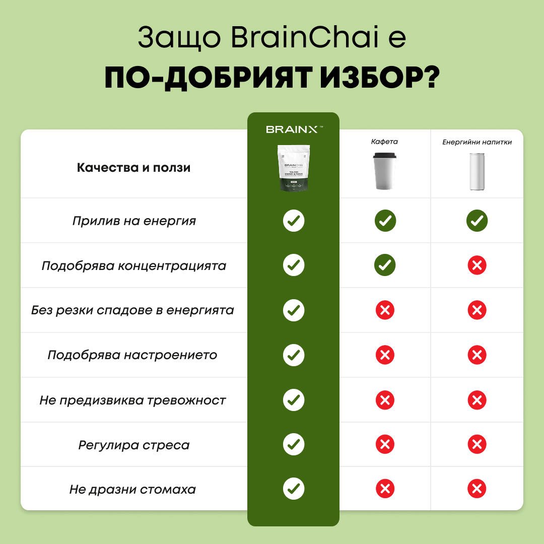 След като почнах да пия brainchai, вече не ми се пие кафе. Много по-свежо и приятно е, не ме боли глава и нямам чувство на безпокойството. Сигурна съм, че направих правилния избор за сутрешно събуждане с този чай.