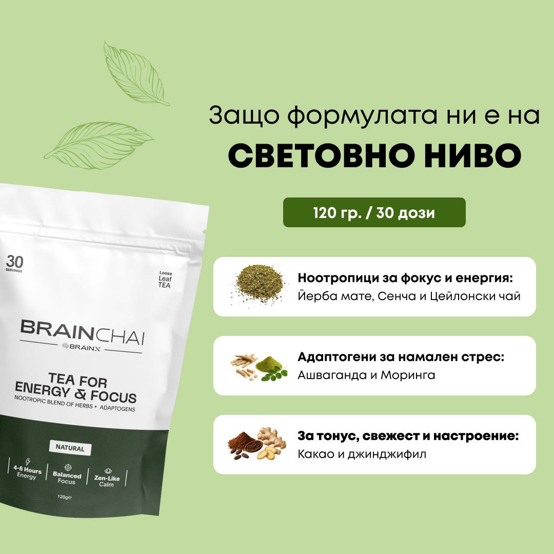 В заключение, мога да кажа, че Brainchai се превърна в съществена част от ежедневието ми, осигурявайки енергията, от която се нуждая през деня, и допринася за по-спокоен нощен сън. Ако търсите чай, който да тонизира деня ви, да има страхотен вкус, ползи за здравето и цялостно качество, Brainchai е Вашият чай.