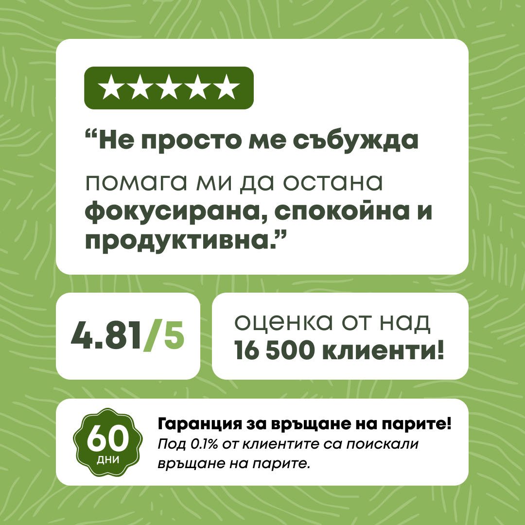 Действа ободряващо и поддържа много добре умствената дейност! Силно препоръчвам пред кафето!