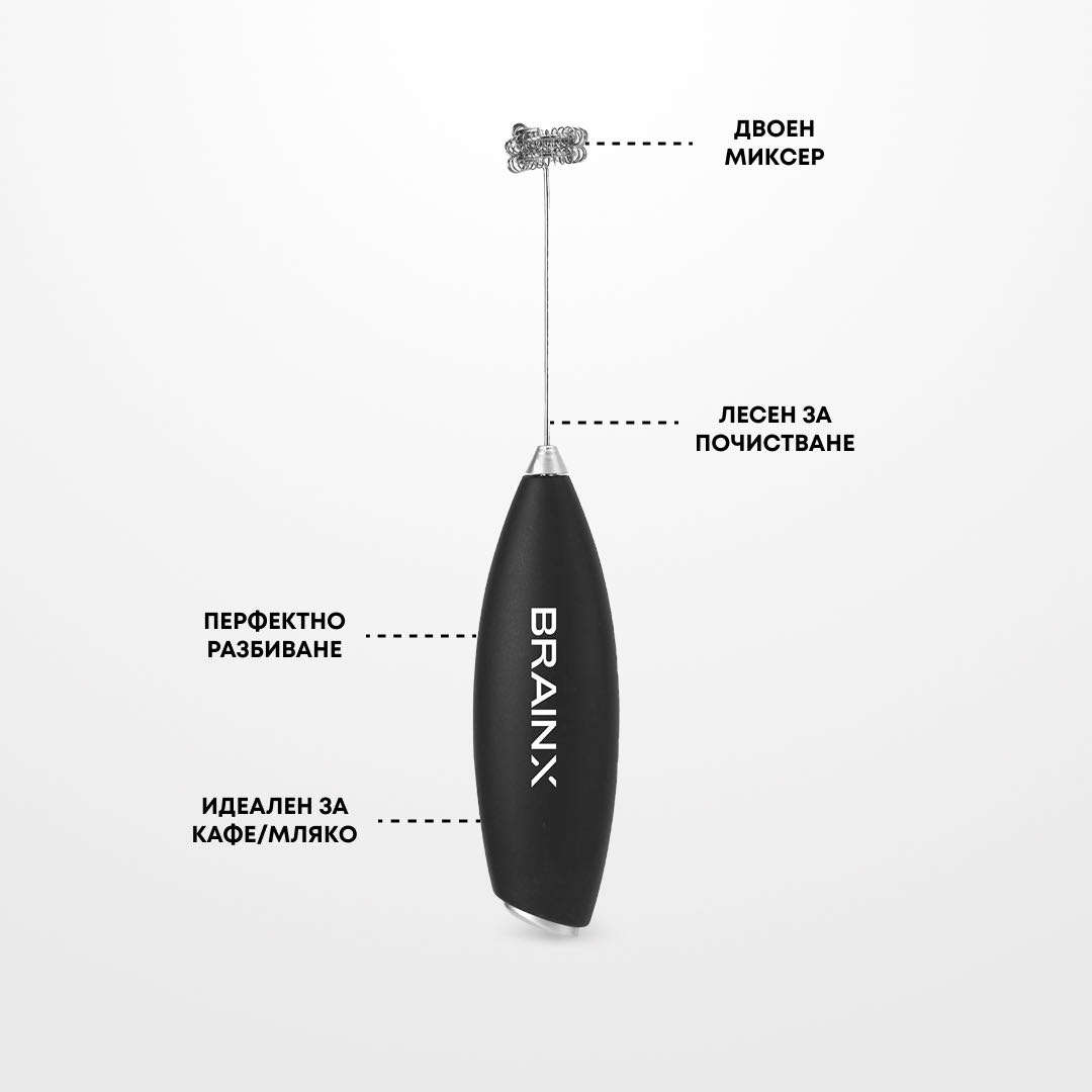 BrainX Frother е компактен миксер за кафе и мляко, който превръща всяка напитка в истинско удоволствие. С двойна бъркалка и ергономичен дизайн, той осигурява перфектно разбиване за секунди – без усилие и без бъркотия. Идеален е за капучино, лате и други подобни напитки.