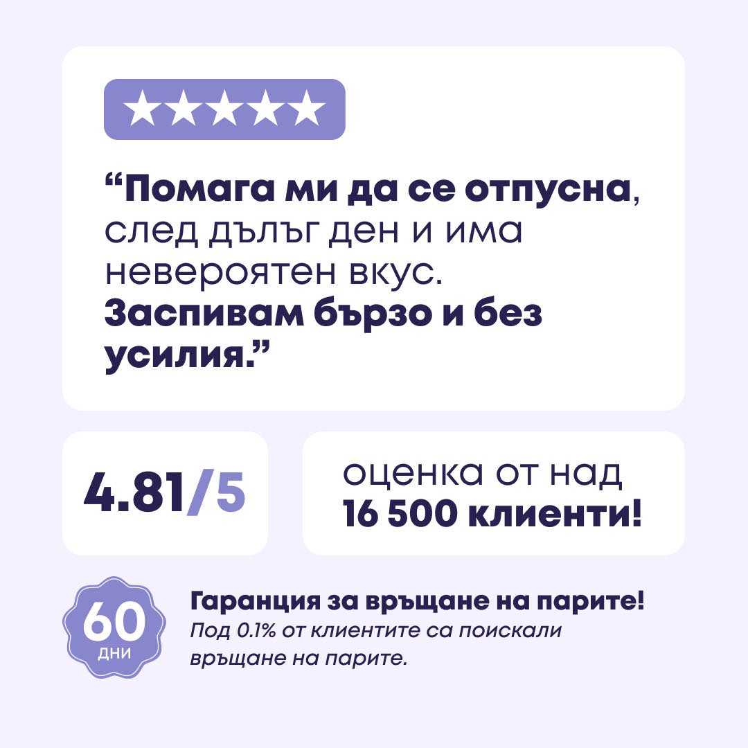 Продуктът е разработен като натурална подкрепа за по-лесно заспиване и спокойствие, благодарение на адаптогените и билките в състава му.